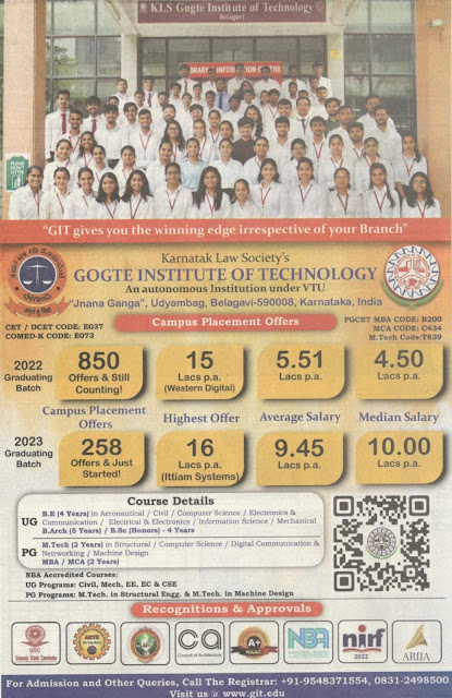 ಪ್ರಗತಿವಾಹಿನಿ ಸುದ್ದಿ; ಬೆಳಗಾವಿ: ಕರ್ನಾಟಕ ಲಾ ಸೊಸೈಟಿಯ, ಗೋಗಟೆ ಇನ್ಸ್ಟಿಟ್ಯೂಟ್ ಆಫ್ ಟೆಕ್ನಾಲಜಿಯ 4 ನೇ ಸೆಮಿಸ್ಟರ್ ಇಂಜಿನಿಯರಿಂಗ್ ವಿದ್ಯಾರ್ಥಿಗಳಿಗೆ “ಬಾರ್ನ್ ಟು ವಿನ್” ಲೇಖಕರಾದ ಶ್ರೀ ರಾಮ್ ಕುಮಾರ್ ಶೇಷು ಅವರಿಂದ ಉದ್ಯೋಗಾವಕಾಶವನ್ನು ಹೆಚ್ಚಿಸುವ ಕುರಿತು ಸ್ಪೂರ್ತಿದಾಯಕ ಆಪ್ತಸಮಾಲೋಚನೆ ಕಾರ್ಯಕ್ರಮ ಜಿಐಟಿಯ ಸಿಲ್ವರ್ ಜುಬಿಲಿ ಸಭಾಂಗಣ ದಲ್ಲಿ ಜರುಗಿತು .
